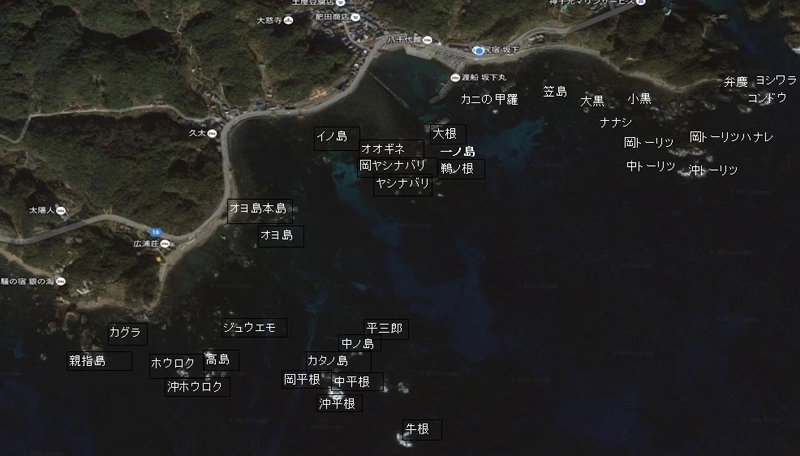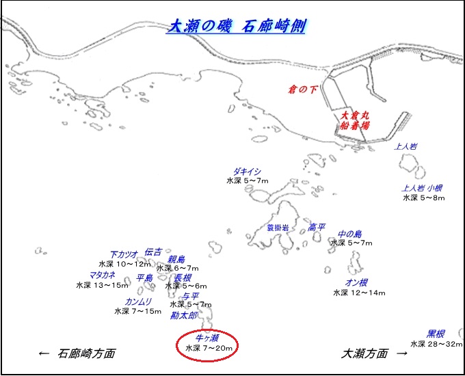 上記地図は渡船民宿「倉の下」様のHPより抜粋させて頂きました