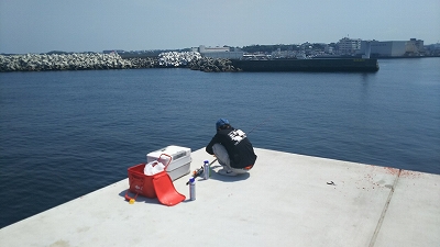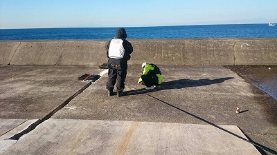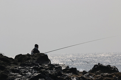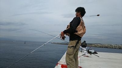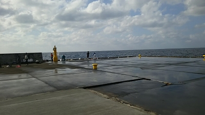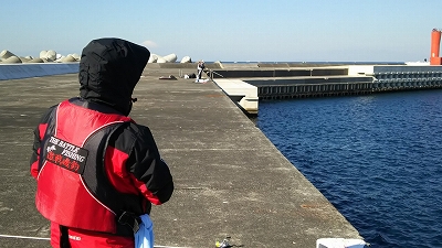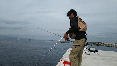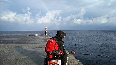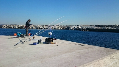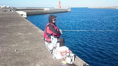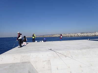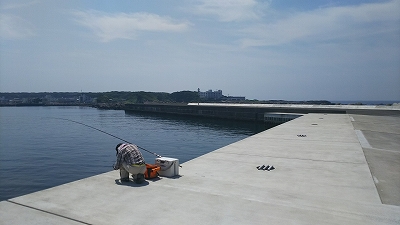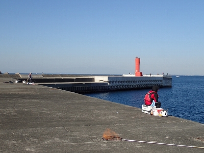 たにやんは先端右側の湾側で投げ釣り
