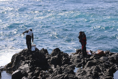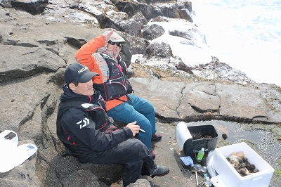 皆さん各々の磯を選択し、船長と相談している
