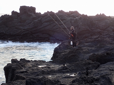 この日は強風でPEラインに慣れていない